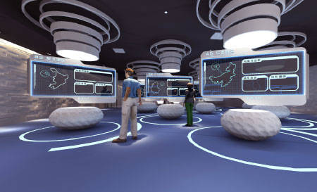 提供具有親和力的交互界面,兼具優(yōu)越的視覺效果和易于操作的人性化設(shè)計,讓展館體驗(yàn)更加流暢自然,館內(nèi)提供人性化的導(dǎo)覽系統(tǒng)設(shè)計——多層級導(dǎo)航欄指示內(nèi)容體驗(yàn)切換;縮略地圖承載對展館空間的示意、瀏覽者當(dāng)前所在位置提示、瀏覽者視角方向顯示等功能,使其在錯綜復(fù)雜的館內(nèi)方向明晰;導(dǎo)覽精通過同臺語音講解,提供展館、展區(qū)的綜合介紹,便于瀏覽者對展館、展區(qū)進(jìn)行宏觀了解。